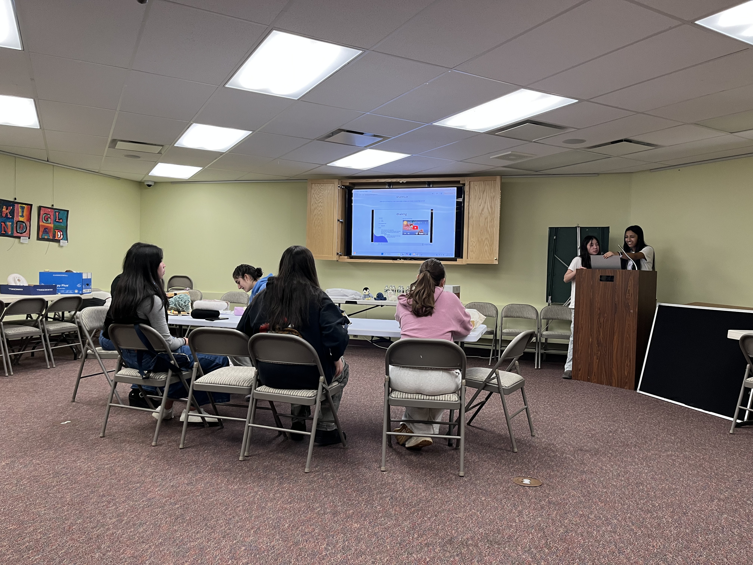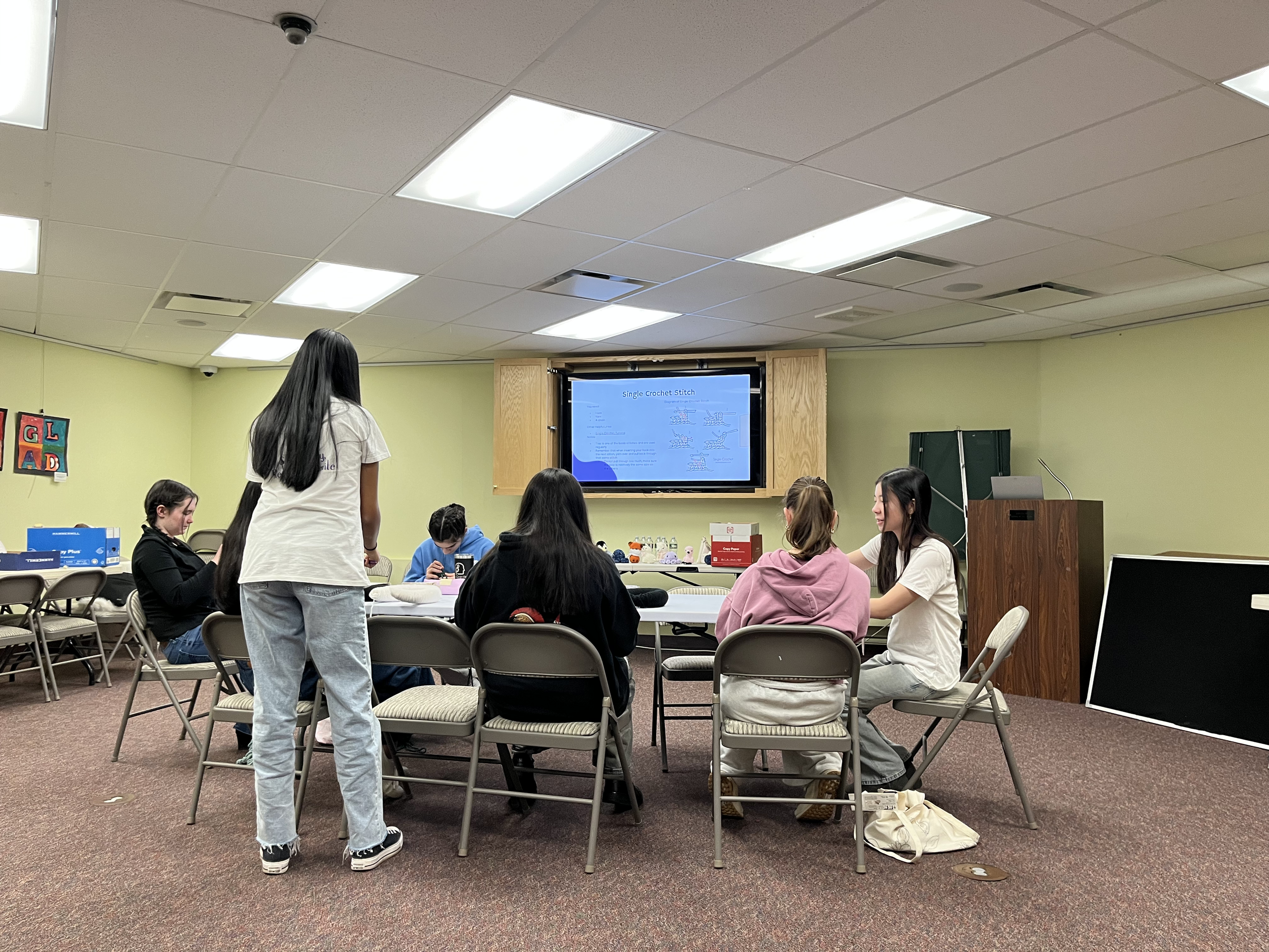 We hosted a crochet workshop to create stuffed animals for our upcoming donation and teach beginners the basics of crocheting!